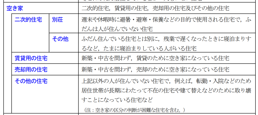空き家の定義をみると、別荘なども含まれていることがわかります。