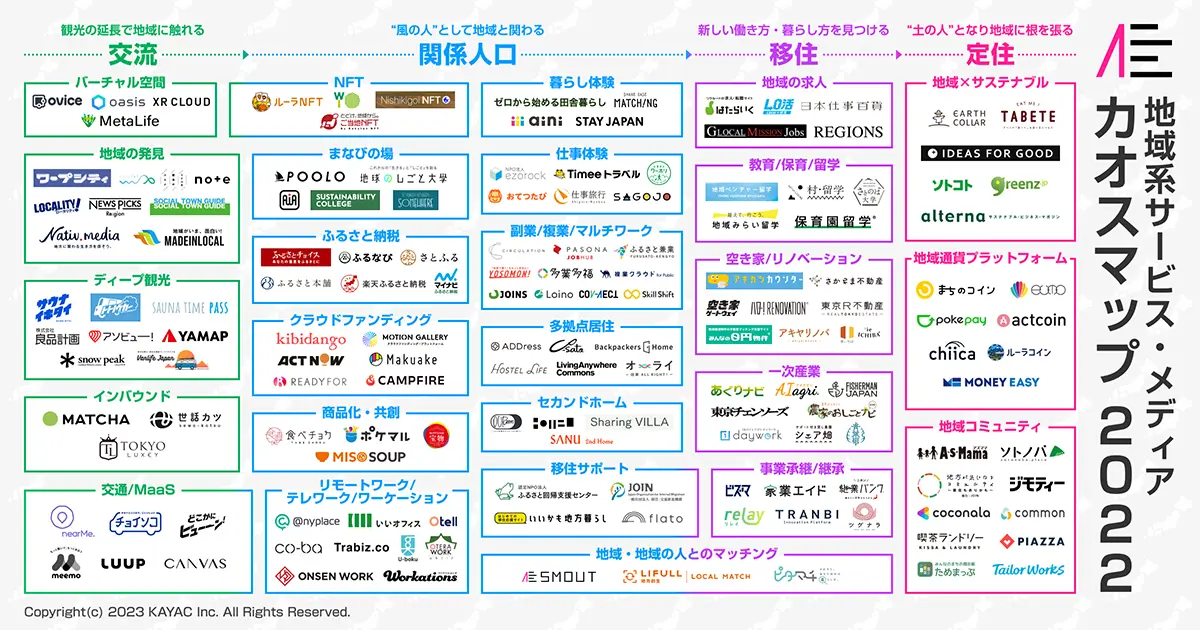 2023年4月20日、面白法人カヤックが「地域系サービス・メディアカオスマップ2022年度版」を公開しました。